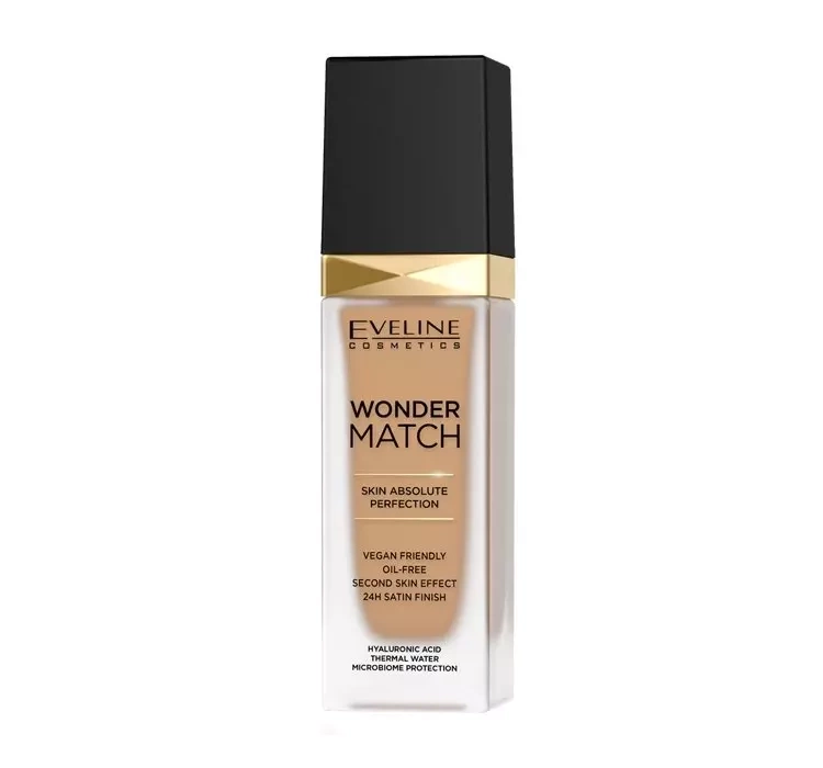 Die einzigartige sensorische Foundation entfernt Anzeichen von Müdigkeit, kaschiert Hautunreinheiten und sorgt für eine perfekte Passform für alle Hauttypen. Sie ist eine gute Lösung für moderne Frauen, dank der das Make-up außergewöhnlich natürlich ist und der Teint gesund und frisch bleibt. Die Wonder Match Skin Absolute Perfection Kosmetik von Eveline ist ein veganes Produkt.