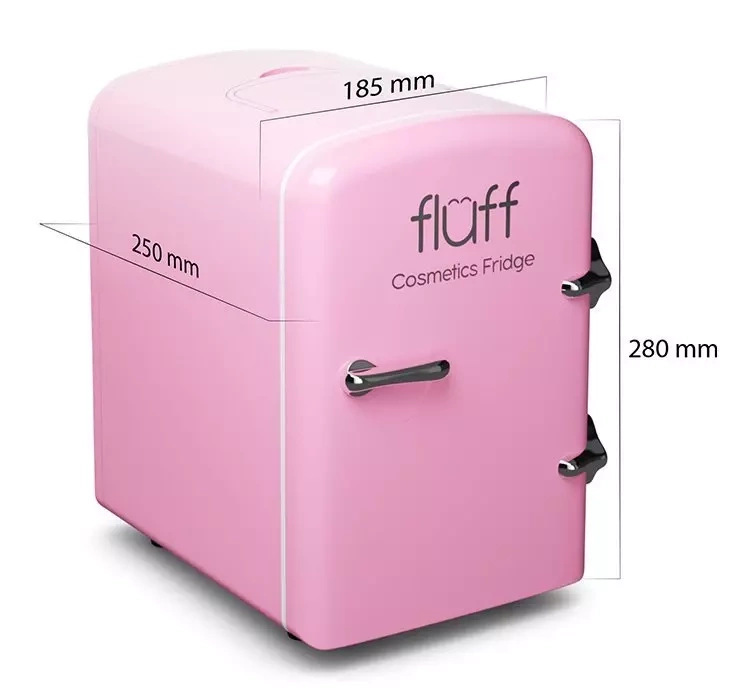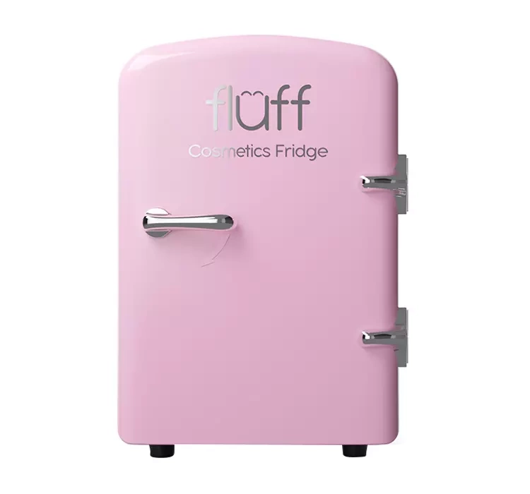 Fluff Cosmetic Fridge ist ein kleiner Kühlschrank für Kosmetik-Aufbewahrung in möglichst besten Bedingungen und entsprechender Temperatur.