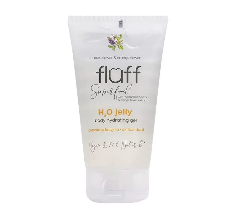 Fluff Superfood H2O ist ein Gelwasser, das die Haut langanhaltend mit Feuchtigkeit versorgt. Das Kosmetikprodukt hat eine beruhigende und weichmachende Wirkung. Es stellt den Komfort trockener und rauer Haut wieder her. Jelly Body Hydrating Gel hat eine extrem leichte Textur. Nach Kontakt mit der Haut verwandelt sich das zarte Gel in eine nährende Essenz auf Wasserbasis, die sofort einzieht und der Haut ein gesundes, frisches Aussehen zurückgibt.