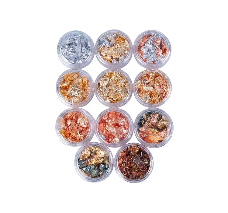 Die Maniküre-Dekoration in Form von Flocken ist die dünnste doppelseitige Folie auf dem Markt. Sie ist extrem einfach aufzutragen und kann von professionellen Nagelstylisten sowie von Personen, die ihre Hände zu Hause pflegen, angewendet werden. Wähle deine Farbe und lass deiner Fantasie freien Lauf. Die Flocken reflektieren das auf sie fallende Licht wunderschön und erzeugen einen glänzenden Effekt.