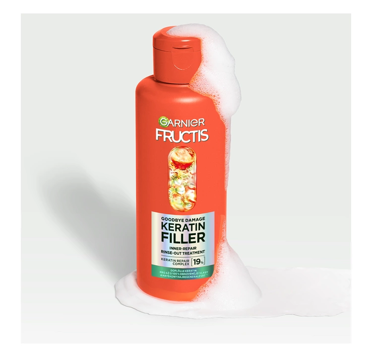 • Conditioner - regenerierende Behandlung von innen zum Spülen mit 19% Keratin Komplex Garnier Fructis Goodbye Damage Keratin Filler.