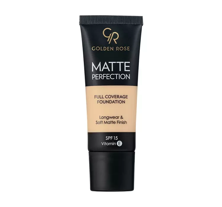 Die deckende Grundierung Matte Perfection von der Kultmarke Golden Rose hat eine lang anhaltende Formel, so dass sie stundenlang auf der Haut bleibt, ohne abzufärben. Die Kosmetik dank der matten Oberfläche verhindert das Glänzen der Haut. Das Produkt garantiert ein natürliches, gesundes Aussehen, ohne Maskeneffekt. Die einzigartige Formel der Golden Rose Matte Perfection Foundation wurde mit sorgfältig ausgewählten Wirkstoffen angereichert, um den Teint zu pflegen. Das Produkt enthält Extrakt aus Traubenkern und Fleischer's Weidenbeere sowie Vitamin E. Darüber hinaus ist die Kosmetik mit einem Sonnenschutzmittel SPF 15 angereichert, das die Haut vor den schädlichen Auswirkungen externer Faktoren und der Sonnenstrahlen schützt.