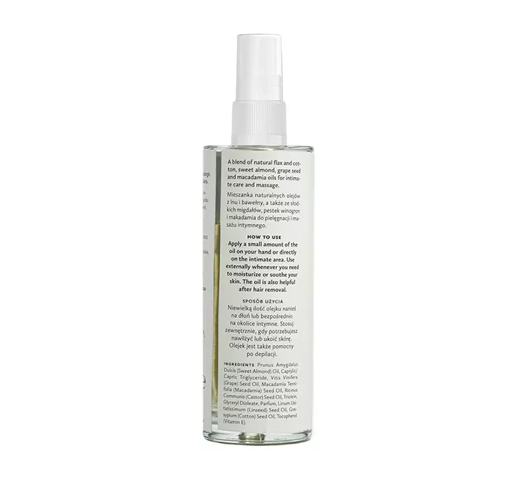 Natürliches Öl für Intimpflege Hagi hat eine universelle rückfettende, lindernde, weichmachende und glättende Wirkung. Es macht die Haut samtig weich und sorgt für ein lang anhaltendes Wohlgefühl, das von einer wohltuenden Erleichterung unterbrochen wird. Es pflegt die empfindlichsten Stellen am Körper der Frau. Lindert Juckreiz, beruhigt Reizungen oder lokale Trockenheit. Die Formel ist vollgepackt mit wertvollen Wirkstoffen aus der Natur, wie beruhigendem Lein- und Baumwollextrakt, schützendem Traubenkernöl und regenerierendem Macadamiaöl.