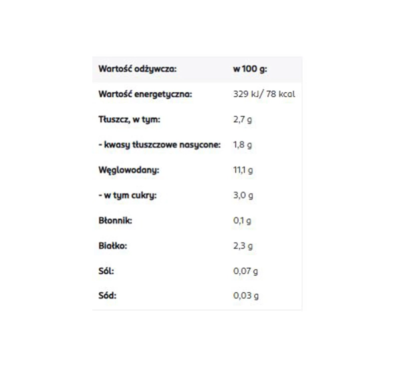 Zutaten: Milch* 51 %, Wasser, gekochter Reis* 18 %, Äpfel* 5 %, Sahne*, Reisstärke*, Säureregulator: Calciumcarbonat.
