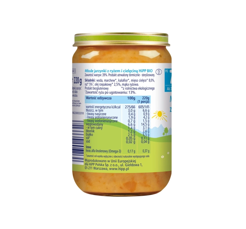 Die Rezeptur der HiPP Menüs basiert auf Zutaten aus ökologischem Landbau, frei von Konservierungsstoffen, Farbstoffen und Aromen. Enthalten ist außerdem Alpha-Linolensäure (ALA) aus der Omega-3-Gruppe – ein wichtiger Nährstoff für die gesunde Entwicklung von Gehirn und Nervenzellen. So ist das Menü nicht nur lecker, sondern auch ernährungsphysiologisch wertvoll.