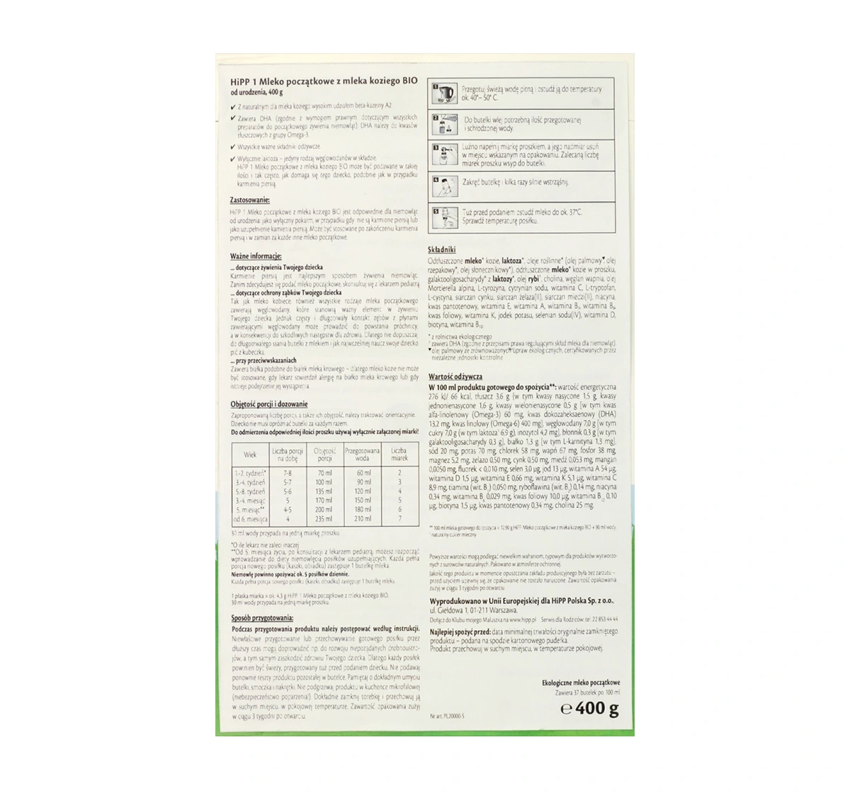 HiPP 1 Ziegenmilchnahrung BIO ist eine ökologische Säuglingsnahrung, die für Babys ab der Geburt geeignet ist. Es stellt eine vollständige Mahlzeit für Babys dar, die nicht gestillt werden, oder kann als Ergänzung zur Stillnahrung verwendet werden. Das Produkt erfüllt die höchsten Qualitätsstandards und bietet eine sanfte und leicht verdauliche Formel, die für empfindliche Bäuchlein geeignet ist.