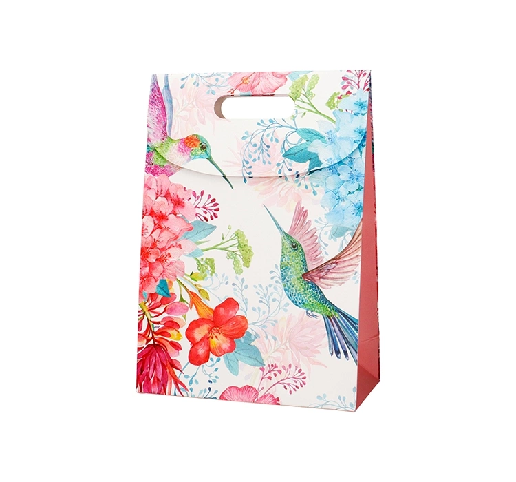 Incood Mittlere Geschenktasche weiß mit bunten Pflanzen und Vögeln