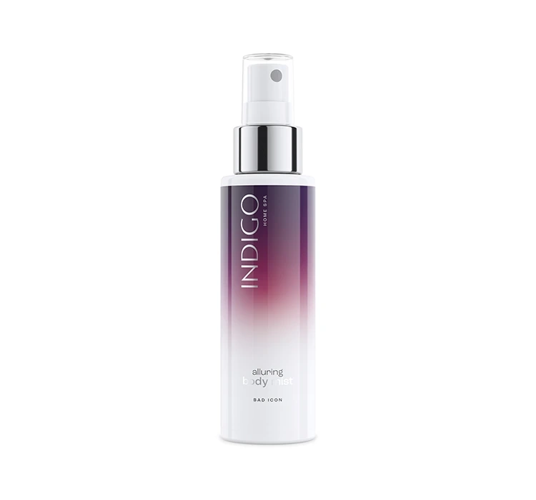 Duftnoten des Indigo Bad Icon Körpersprays: Zedernholz, Tonkabohne, Karamell, Amber, Vanille, Tabak, Honig, Sandelholz, Kokosnuss, Schokolade, Zimt, Myrrhe, Haselnuss, Iris, Muskatnuss, Bergamotte, Davana, schwarze Johannisbeere, Milch, Apfel.