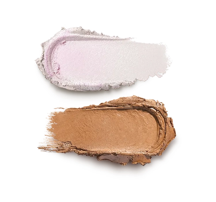 Tragen Sie das Produkt auf die Wangenknochen, die obere Stirnpartie, die äußeren Schläfen, die Kieferlinie und beide Seiten der Nase auf, um ihnen mehr Kontur zu verleihen. Es kann hilfreich sein, die Form der Zahl 3 auf beiden Seiten des Gesichts zu zeichnen. Sanft umrühren, um die gewünschte Intensität zu erreichen. HIGHLIGTHER Tragen Sie das Produkt auf die Wangenknochen, Kinn, Nasenrücken, Stirn und Dekolleté auf und verreiben Sie es, um die Intensität des Glanzes anzupassen.