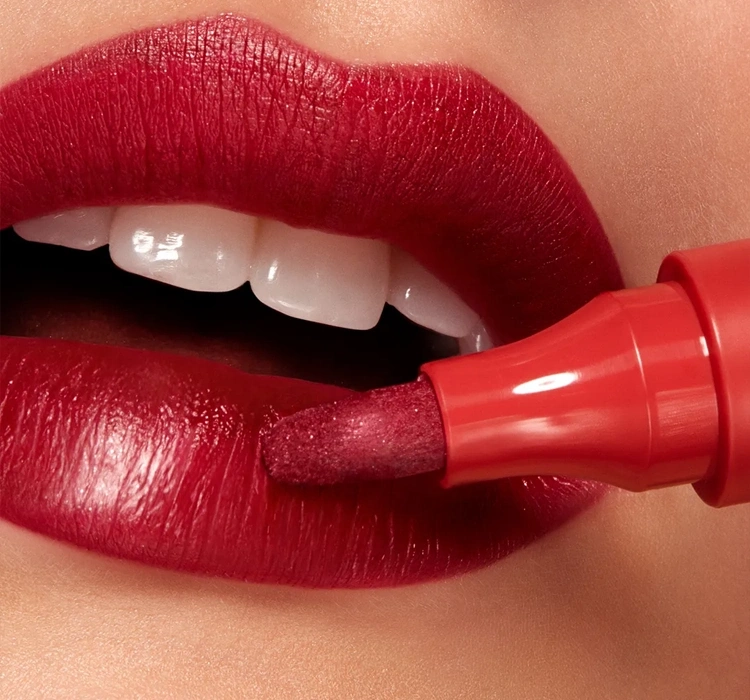 Für einen dezenten Effekt einmal auftragen oder nach dem Trocknen mehrmals auftragen, um eine intensivere Farbe zu erzielen. Anschließend einen transparenten Lipgloss mit glänzendem Finish auftragen.