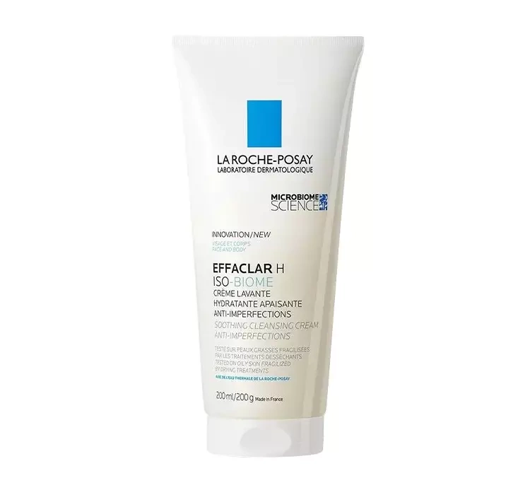 Waschcreme fürs Gesicht Effaclar H Iso-Biome von La Roche-Posay ist einzigartige Kosmetik, die den allgemeinen Hautzustand verbessert und ihr gesundes, schönes Aussehen schenkt. Die Waschcreme kräftigt wirksam die Schutzbarriere der Haut und unterstützt das richtige Funktionieren des Mikrobioms. Die Kosmetik sichert bis zu 24 Stunden Feuchtigkeitsspendung, verlässt die Haut glatt und weich anzufühlen. Schützt sie vor Austrocknung und reduziert stufenweise die Unreinheiten.