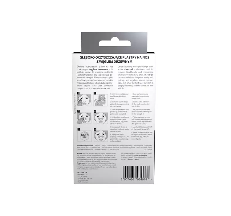 Die speziell entwickelte Formel der Nasenpflaster auf der Basis von Holzkohle verengt die Poren, entfernt Mitesser und Verunreinigungen und beeinflusst die Talgregulierung.
