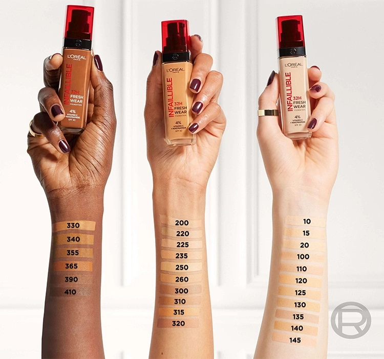 • L'Oreal Infallible 32h Fresh Wear ist eine lang anhaltende, kompromisslose Gesichtsgrundierung mit 32 Stunden Halt.