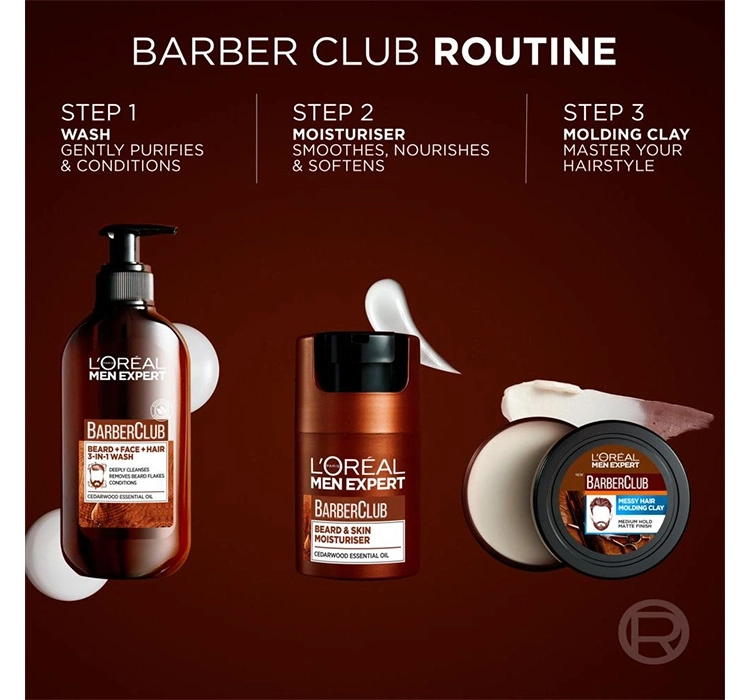 L’Oréal Men Expert präsentiert Barber Club — eine Produktreihe zur Pflege von männlichem Bart- und Schnurrbartwuchs, inspiriert durch das Wissen der besten Barbiere. Dank des Zedernholzöls bietet Barber Club eine umfassende Pflege für Bärte jeder Länge. Unter den vielen Produkten dieser Männerpflegeserie finden sich Gesichtsreinigungsgele, Feuchtigkeitsgele sowie Balsame und Stylingprodukte für den Bart. Alles, um deine Haut gepflegt und deinen Bart auffällig und bewundernd zu halten.