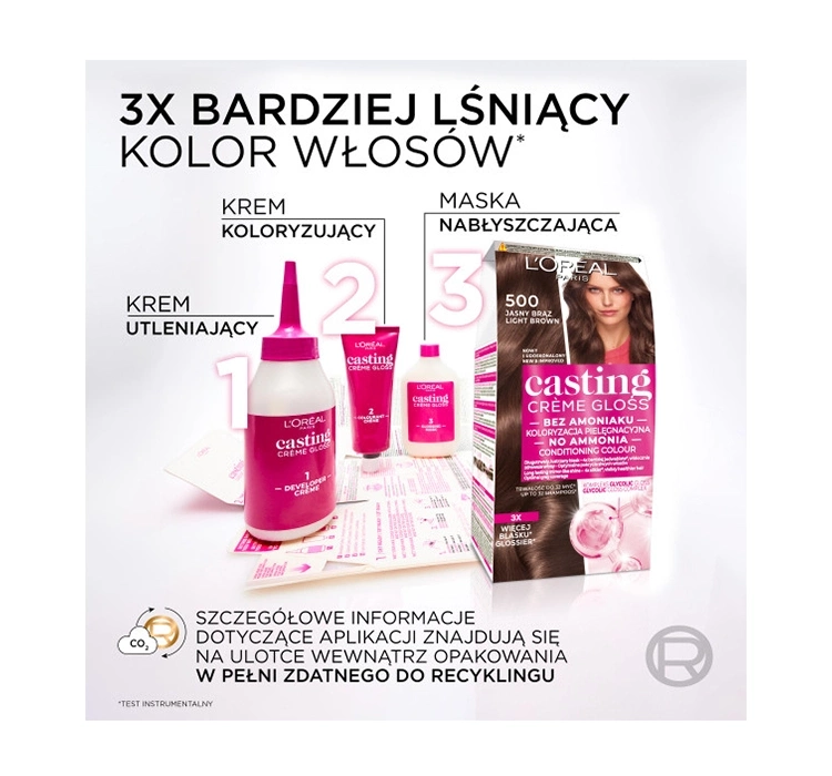 L'Oréal Paris Crème Gloss Packung enthält:1 Tube Färbecreme, 48 ml 1 Tube Oxidationsmilch, 72 ml 1 Flasche Honig-Conditioner, 60 ml 1 Gebrauchsanweisung 1 Paar hochwertige Schutzhandschuhe