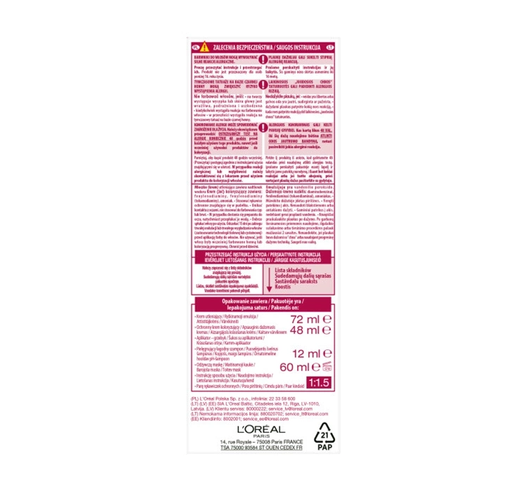 SICHERHEITSHINWEISE: HAARFARBEN KÖNNEN STARKE ALLERGISCHE REAKTIONEN HERVORRUFEN.