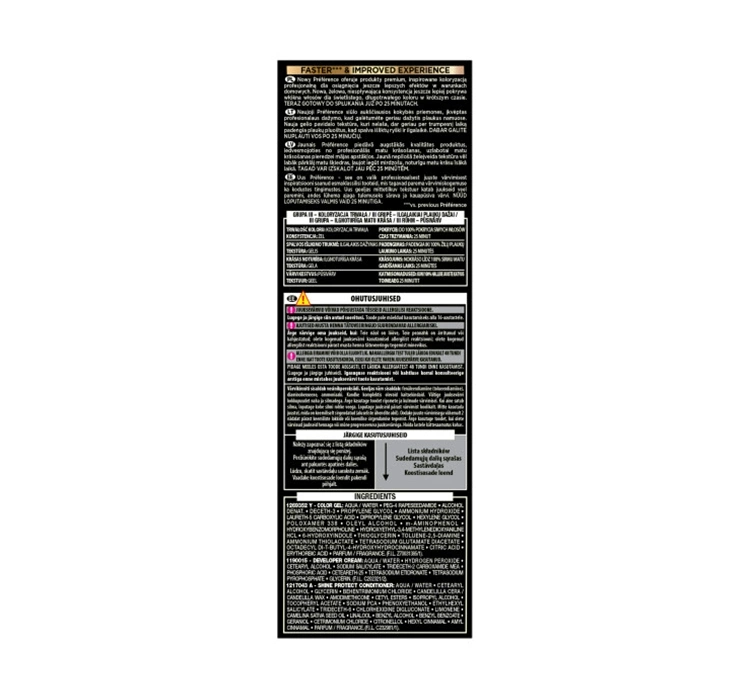 1285220 F - Ingredients: Aqua / Water, Peg-4 Rapeseedamide, Alcohol Denat, Deceth-3, Propylene Glycol, Ammonium Hydroxide, Laureth-5 Carboxylic Acid, Dipropylene Glycol, Hexylene Glycol, Poloxamer 338, Oleyl Alcohol, 2-amino-3-hydroxypyridine, M-aminophenol , Hydroxybenzomorpholine, Thioglycerin, Toluene-2,5-diamine, Ammonium Thiolactate, N,n-bis(2-hydroxyethyl)-p-phenylenediamine Sulfate, Tetrasodium Glutamate Diacetate, Octadecyl Di-t-butyl-4-hydroxyhydrocinnamate, Citric Acid, Erythorbic Acid, 2,4-diaminophenoxyethanol Hcl, Parfum / Fragrance (F.i.l. Z70031392/1).