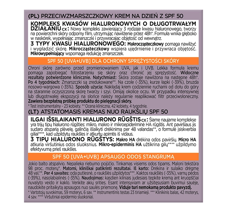Die intensiv auffüllende Anti-Aging-Creme hat eine leichte Textur, die schnell einzieht und kein fettiges Finish hinterlässt. Bereits nach 4 Wochen Anwendung wird die Haut sichtbar elastischer, glatter und mit mehr Feuchtigkeit versorgt.