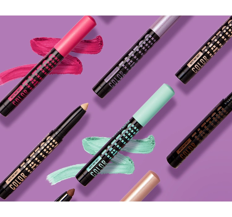 Der Color Tattoo Lidschatten in Stiftform von Maybelline New York ist in einer breiten Farbpalette erhältlich, mit mattem oder glänzendem Finish, was Ihnen ermöglicht, vielfältige Make-up-Looks zu kreieren. Dank seiner Abriebfestigkeit bleibt das mit Color Tattoo 24H Eye Stix erstellte Make-up den ganzen Tag über ohne Nachbesserungen erhalten. Das Produkt setzt sich nicht in den Lidfalten ab, verschmiert nicht und verliert nicht an Farbintensität.