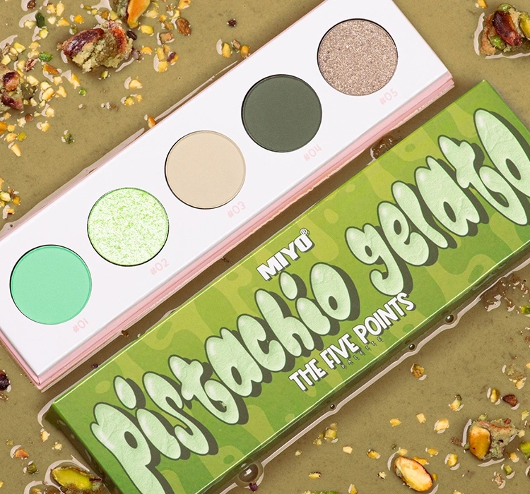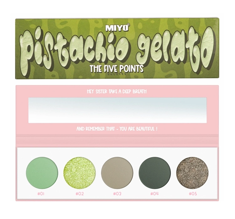 MIYO Pistachio Gelato ist eine außergewöhnliche Lidschattenpalette, mit der du mühelos wunderschönes Augen-Make-up für jede Gelegenheit zaubern kannst. Sie enthält 5 matte, schimmernde und metallische Lidschatten, die in einer eleganten Palette verpackt sind. Damit kannst du problemlos ein romantisches, sinnliches Make-up für einen Abend oder ein schönes, natürliches Tages-Make-up kreieren, sowie einen auffälligen Look, der perfekt für eine wilde Party geeignet ist.