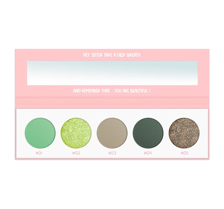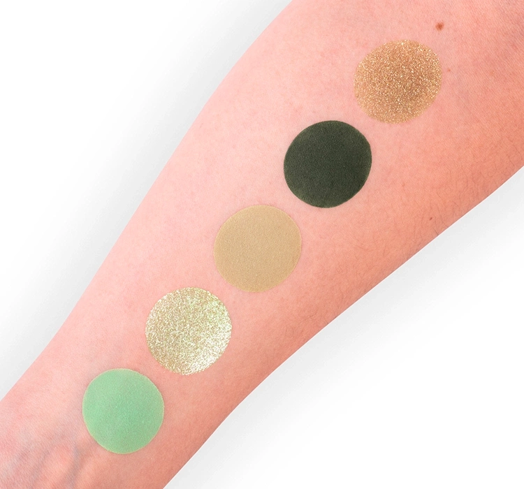 Die Palette enthält 5 einzigartige Lidschatten in verschiedenen Finishes - matt, schimmernd und metallisch, die in grünen Farbtönen gehalten sind. Sie haben eine leichte, seidig-glatte Konsistenz, die sich mühelos auf dem Lid verteilen lässt und fantastisch verblendet sowie mit anderen Kosmetika kombiniert werden kann.