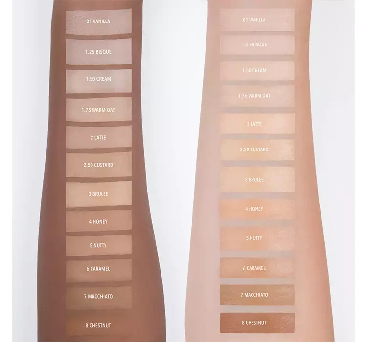 Der Condealer Moira Mega ist in einer breiten Farbpalette erhältlich, die an die meisten natürlichen Hauttöne angepasst ist. Achte bei der Auswahl auf die Nummer und den daneben stehenden Namen des Farbtons, z. B. 100 Vanilla, um Deinen eigenen Bedürfnissen perfekt zu entsprechen. Außerdem funktioniert er gut in einer helleren Farbe als Highlighter und einer dunkleren Farbe zum Konturieren des Gesichts.
