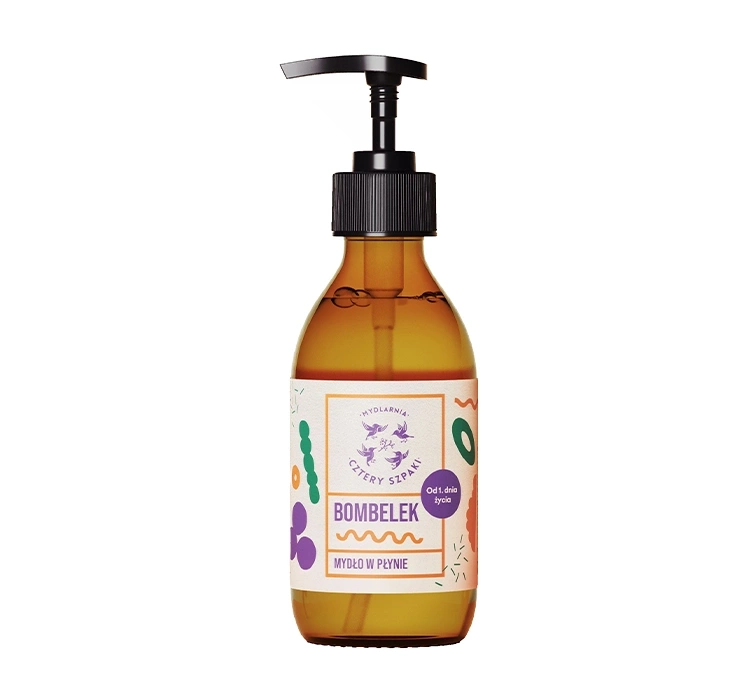 Die natürliche Flüssigseife Bombelek von Mydlarnia Cztery Szpaki überzeugt mit einer minimalistischen Rezeptur, die sicher bereits ab dem ersten Lebenstag angewendet werden kann. Diese sanfte, vielseitige Pflege eignet sich nicht nur als Handseife, sondern auch als mildes Duschgel oder Badezusatz für Babys und Kinder.