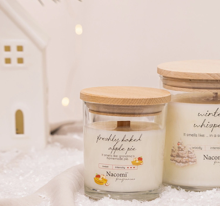 Die Kerzen der Nacomi Fragrances Linie bestehen aus natürlichem und ungefärbtem Sojawachs, angereichert mit ätherischen Ölen. Sojawachs, im Gegensatz zu Paraffin, ist ungiftig und biologisch abbaubar. Es brennt auch viel sauberer und länger. Die Kerze wurde in einem einfachen, gläsernen Gefäß eingefasst, das zu jeder Inneneinrichtung passt und ihr Charme verleiht.
