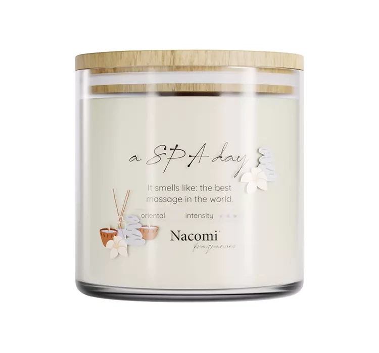 Die Nacomi Fragrances SPA Day Soja-Duftkerze ist ein Duft, der an einen Besuch in Deinem Lieblingsschönheitssalon erinnert. Die Zusammensetzung enthält frische, grüne und fruchtige Noten, die sich mit zarten Akkorden von orientalischen Blumen, Jasmin, Rose und Veilchen verbinden.