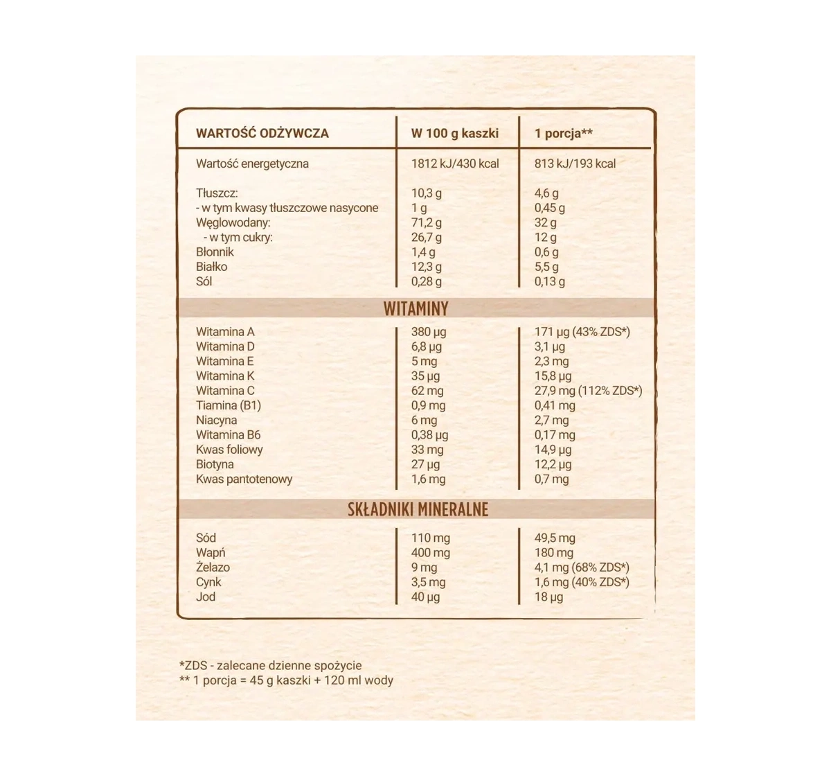 Dunkle Partikel stammen vom Reis. Verpackung enthält 5 Portionen vollwertiger Milch-Getreide-Mahlzeit.