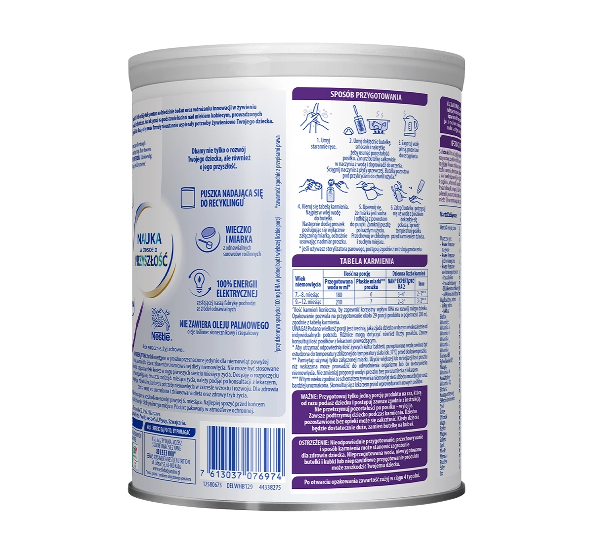• Nestlé NAN Expert Pro HA 2 enthält hydrolysierte Proteine, die das Risiko einer Kuhmilchallergie verringern können. Das Produkt unterstützt die gesunde Entwicklung des Babys durch die Versorgung mit Nährstoffen.