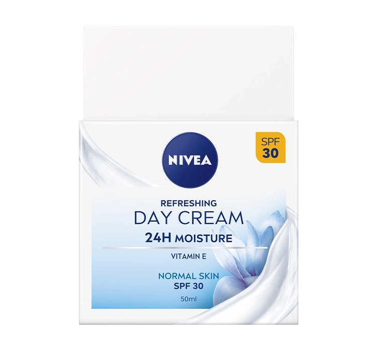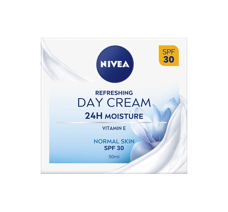 NIVEA Refreshing Tagescreme 24h Feuchtigkeit bietet tägliche Pflege für normale Haut, die langanhaltende Feuchtigkeit, Frische und Schutz benötigt. Die Formel der NIVEA 24h Feuchtigkeitscreme für das Gesicht wurde mit Vitamin E und natürlichem Wasserlilienextrakt angereichert, die gemeinsam feuchtigkeitsspendend und beruhigend wirken und das natürliche Hautgleichgewicht unterstützen. Die Creme zieht schnell ein, beschwert die Haut nicht und hinterlässt sie glatt, weich und angenehm erfrischt.