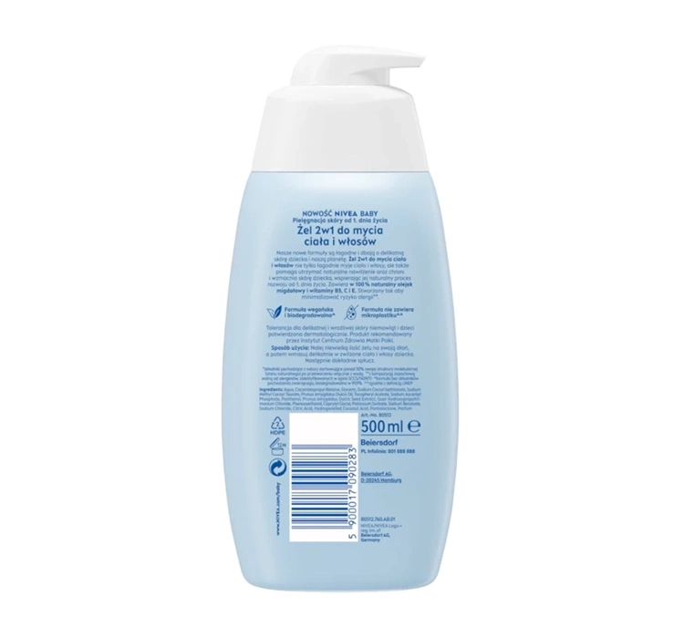 NIVEA BABY 2IN1 WASCHGEL FÜR KÖRPER UND HAAR BEI KINDERN MIT PUMPE 500ML
