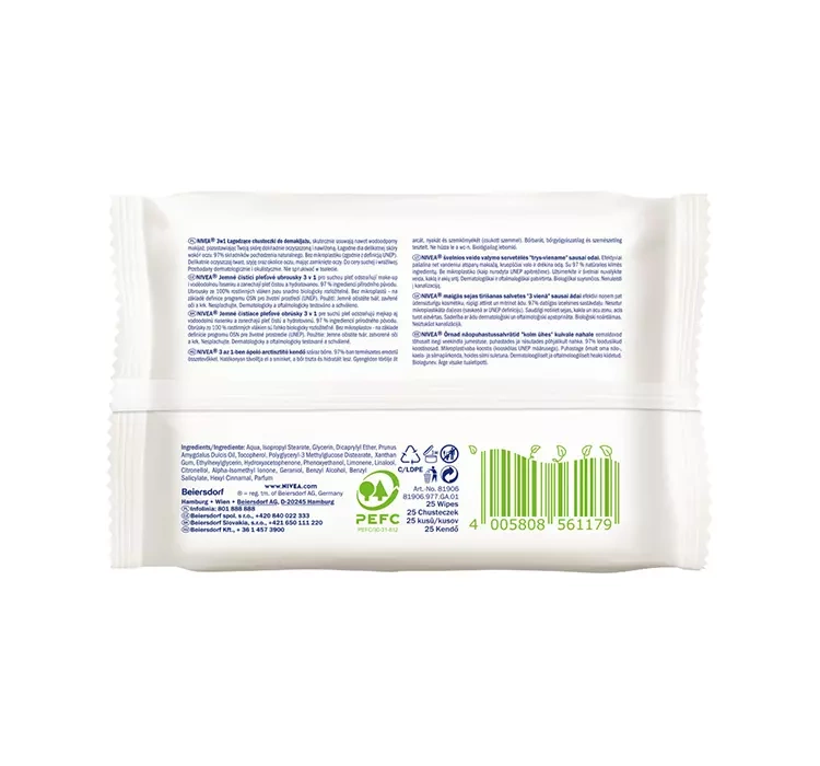 NIVEA BIOLOGISCH ABBAUBARE ABSCHMINKTÜCHER FÜR TROCKENE HAUT 25 STÜCK