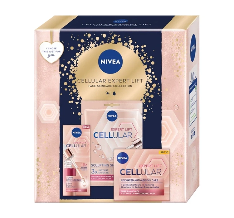 Das NIVEA CELLULAR EXPERT LIFT Kosmetikset ist die perfekte Geschenkidee für eine wirksame Anti-Aging-Pflege. Die Formel mit Anti-Aging-Wirkstoffen hilft nicht nur dabei, tiefe Falten zu reduzieren, sondern auch die Haut zu straffen und zu modellieren, um ihr ein jugendlicheres Aussehen zu verleihen. Dank der dermatologisch bestätigten Hautverträglichkeit sind die Produkte auch für anspruchsvolle Haut geeignet. Die elegante Verpackung macht das NIVEA CELLULAR EXPERT LIFT Set zu einem besonderen Geschenk für jeden Anlass.