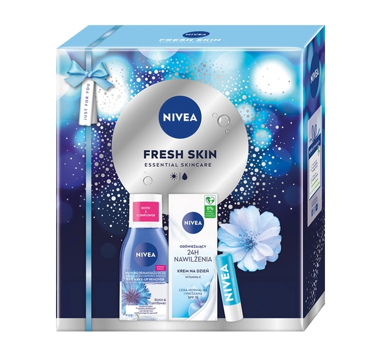 Das NIVEA Fresh Skin Set bietet umfassenden Schutz und Pflege für Gesicht und Lippen, kombiniert die Wirksamkeit der Produkte mit täglichem Hautkomfort. Dank der dermatologisch bestätigten Verträglichkeit können die Kosmetika sicher auf jedem Hauttyp verwendet werden. Die Kombination aus Reinigung, Feuchtigkeitspflege und Sonnenschutz sorgt dafür, dass die Haut den ganzen Tag frisch, glatt und optimal geschützt bleibt.