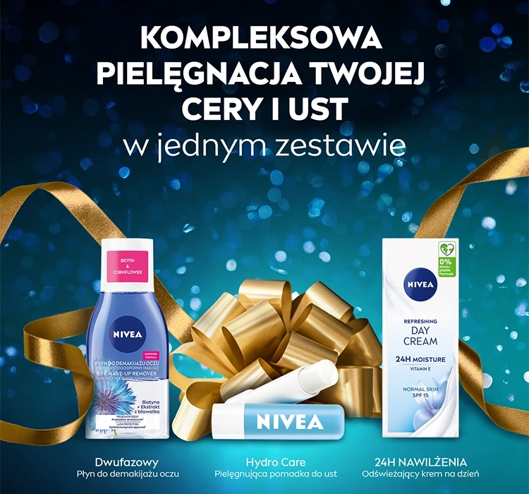 Die Produkte wurden entwickelt, um die Haut effektiv zu reinigen und zu pflegen. Der zweiphasige Make-up-Entferner von NIVEA entfernt wasserfestes Make-up und Mascara, hinterlässt die Haut sauber und erfrischt. Die Tagescreme mit LSF15 spendet 24 Stunden intensive Feuchtigkeit, stellt das natürliche Gleichgewicht der Haut wieder her und sorgt für Komfort. Der Hydro Care SPF15 Lippenbalsam schützt die Lippen vor Kälte, Wind und trockener Luft und macht sie weich und geschmeidig.
