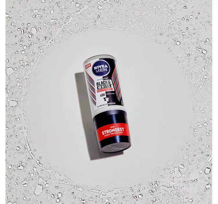 Der Antitranspirant im Roll on Black & White Max Protection sichert zusätzlich ein angenehmes Gefühl von Frische und wunderbaren Duft. Die Wirksamkeit des Deodorants hält 48 Stunden lang und wurde in klinischen Untersuchungen bestätigt. Der Antitranspirant Nivea Men ist frei von Alkohol und ruft keine Reizungen hervor.