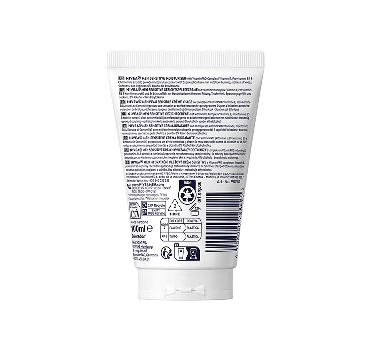Mit der Wahl der beruhigenden Feuchtigkeitscreme NIVEA MEN Sensitive investieren Sie in den täglichen Schutz und die Pflege empfindlicher Gesichtshaut. Ein unverzichtbarer Bestandteil der täglichen Pflegeroutine jedes Mannes, der frisch aussehen und sich den ganzen Tag wohlfühlen möchte. Die praktische Verpackung eignet sich ideal für Reisen und nach dem Training, und regelmäßige Anwendung verbessert sichtbar die Hautqualität. Vertrauen Sie auf NIVEA, den führenden Anbieter in der Männerpflege – wählen Sie die Creme für empfindliche Haut NIVEA MEN Sensitive und schenken Sie Ihrem Gesicht tägliche Linderung, Feuchtigkeit und Schutz.
