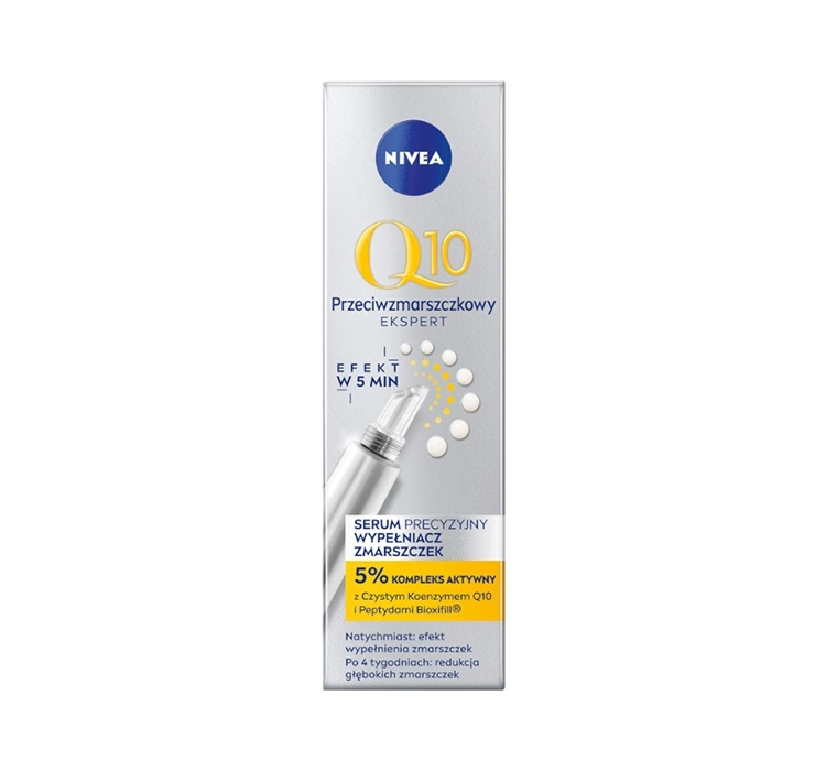 Entdecke das Gesichtsserum NIVEA Q10 Präziser Faltenfüller in Cremeform! Die schnell einziehende Formel enthält reines Coenzym Q10 und Bioxifill-Peptide. Die Anti-Aging-Wirkstoffe dringen tief in 10 Hautschichten ein und stimulieren die Kollagenproduktion, um hartnäckige Falten von innen aufzufüllen. Das Ergebnis ist eine deutliche Reduktion feiner Mimiklinien und Falten. Das NIVEA Q10 Faltenfüllerserum sorgt für ein sofortiges Gefühl von weicher und straffer Haut. Zusätzlich bildet es einen feuchtigkeitsspendenden Film auf der Hautoberfläche!