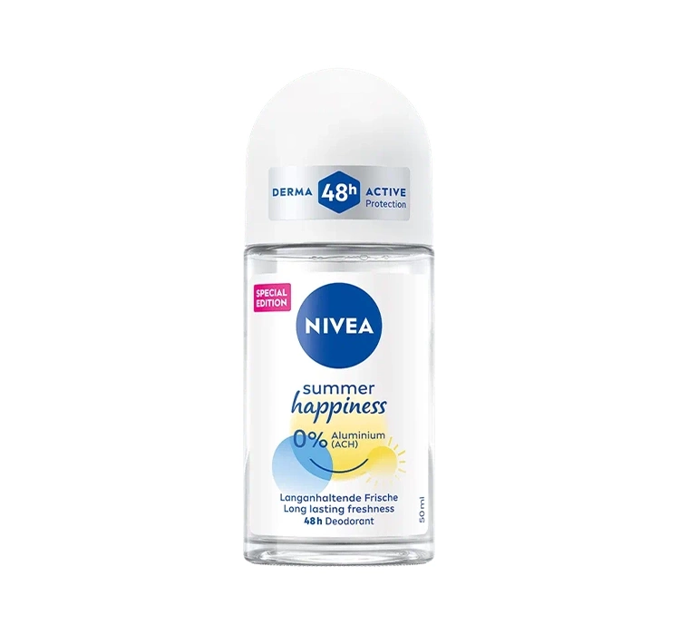 Dieses Deo ist die perfekte Wahl für alle, die ein leichtes, frisches, sommerliches Deo suchen, das kein Aluminium enthält und gleichzeitig den ganzen Tag über zuverlässigen Schutz bietet. Die Hautverträglichkeit wurde dermatologisch bestätigt, was den NIVEA Summer Happiness Roll-On zu einer sicheren und angenehmen Lösung für den täglichen Gebrauch macht.