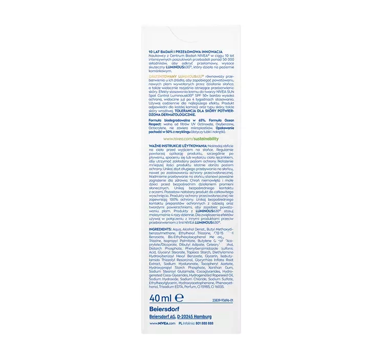 Nivea SUN UV Face Specialist Dark Spot Control LUMINOUS 630 ist ein einzigartiges Kosmetikum, das Sonnenschutz und umfassende Pflege für die Gesichtshaut bietet.