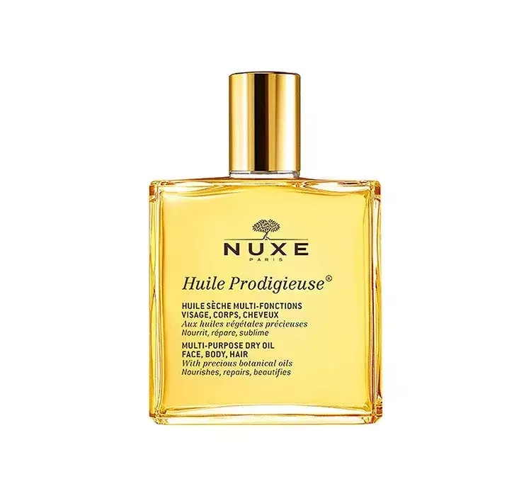 Nuxe Huile Prodigieuse ist trockenes Öl, das Gesicht, Körper und Haar ernährt, regeneriert und ihnen Glow verleiht. Mit Tsubaki Öl angereichert. Besitzt antioxidative Eigenschaften, schützt vor Luftverschmutzungen und reduziert Schwangerschaftsstreifen. Mit unvergleichbarer Konsistenz und bezauberndem Duft.