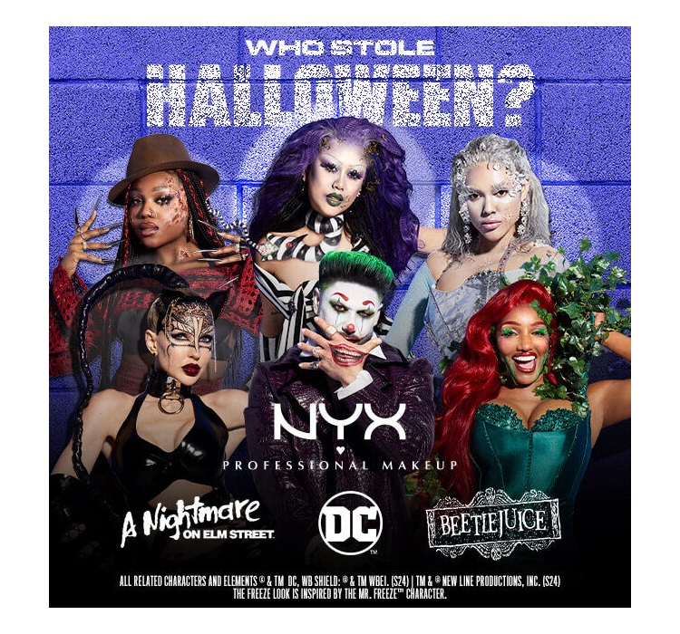 Überrasche alle in diesem Halloween mit deiner Verwandlung, die deine Individualität unterstreicht. Entdecke die Kosmetikprodukte der Serie „NYX Who Stole Halloween?”, inspiriert von Warner Bros.-Filmcharakteren und DC-Superschurken. Die Mini-Kollektion enthält Gesichts- und Körperfarben sowie Lipglosse und ist ideal für Halloween-Fans. Sie bietet limitierte Produkte, mit denen du unglaubliche Make-ups kreieren kannst, inspiriert von ikonischen Figuren.