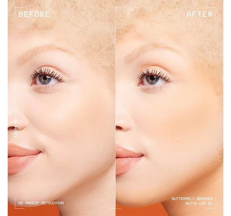 Der gepresste Gesichtspuder-Bronzer NYX Buttermelt Bronzer hat eine interessante Formulierung, die einen gebräunten Effekt und seidig glatte Haut bietet. Ohne unnatürlich matte Erscheinung, ungleichmäßige Anwendung oder zu dunkle, fast orangene Bronzer-Tönung. Der Buttermelt Bronzer von NYX ist in mehreren Farbtönen und Nuancen erhältlich, sodass du leicht die passende Variante für deinen Teint und deine Make-up-Vorlieben finden kannst. Der Buttermelt Bronzer passt sich ideal dem Teint an und sorgt für einen sonnengeküssten Look das ganze Jahr über.