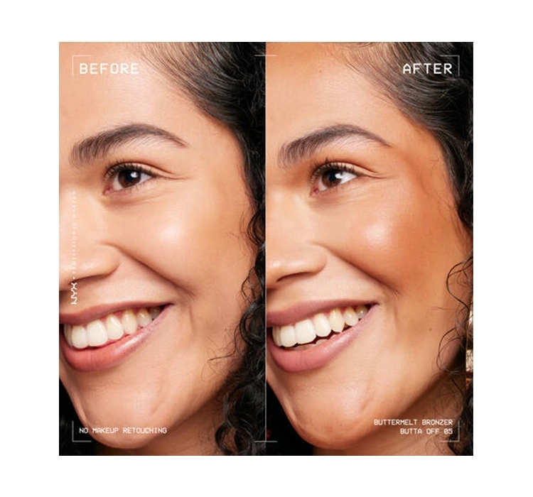 Für die besten Ergebnisse einer natürlichen Bräune empfehlen wir, den NYX Buttermelt Bronzer mit dem speziell dafür vorgesehenen Pinsel aus der Buttermelt-Serie aufzutragen. Die Anwendung wird einfacher und die Haut erhält ein gesundes Aussehen.