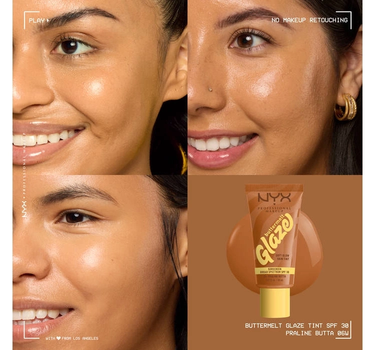 Diese getönte Creme ist ideal für alle, die ein leichtes, natürliches Make-up für den Alltag suchen. NYX Professional Makeup Buttermelt Glaze Soft Glow Skin Tint SPF30 vereint Make-up und Pflege für ein strahlendes Aussehen und Schutz der Haut – den ganzen Tag über.