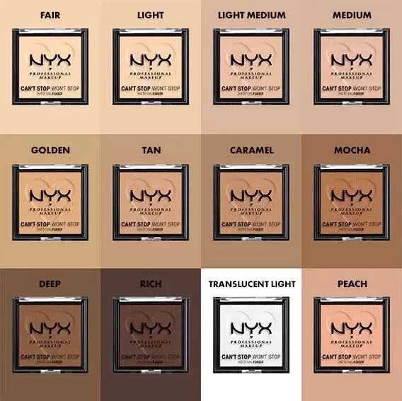 NYX Professional MakeUp Can't Stop Won't Stop Mattifying Powder ist eine Serie von Gesichtspudern mit mattierenden Eigenschaften. Eine breite Farbpalette sorgt dafür, dass jeder einen Farbton findet, der perfekt zu seinem Teint passt.