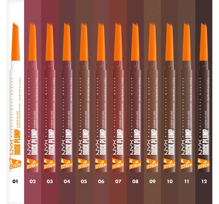 NYX Professional Makeup Duck Plump Lippenkonturenstift ist ein innovativer, automatischer Lipliner, der Präzision mit einem aufpolsternden Effekt kombiniert. Ausgestattet mit einer multifunktionalen Spitze: eine präzise Seite für klare Linien und eine flache Seite zum Ausfüllen und Betonen der Lippenwinkel – für einfache Anwendung und Formgebung.