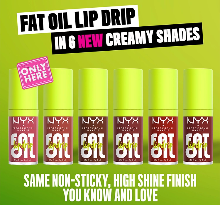 Fat Oil ist eine Kollektion von einzigartigen Lipglossen, die den Lippen nicht nur einen sensationellen Glanz verleihen, sondern auch für ihre Pflege sorgen – für glatte und feuchte Lippen. Wenn du ein Produkt suchst, das deinen Lippen einen wunderschönen Glanz verleiht, wähle den Lip Gloss von NYX Professional MakeUp.